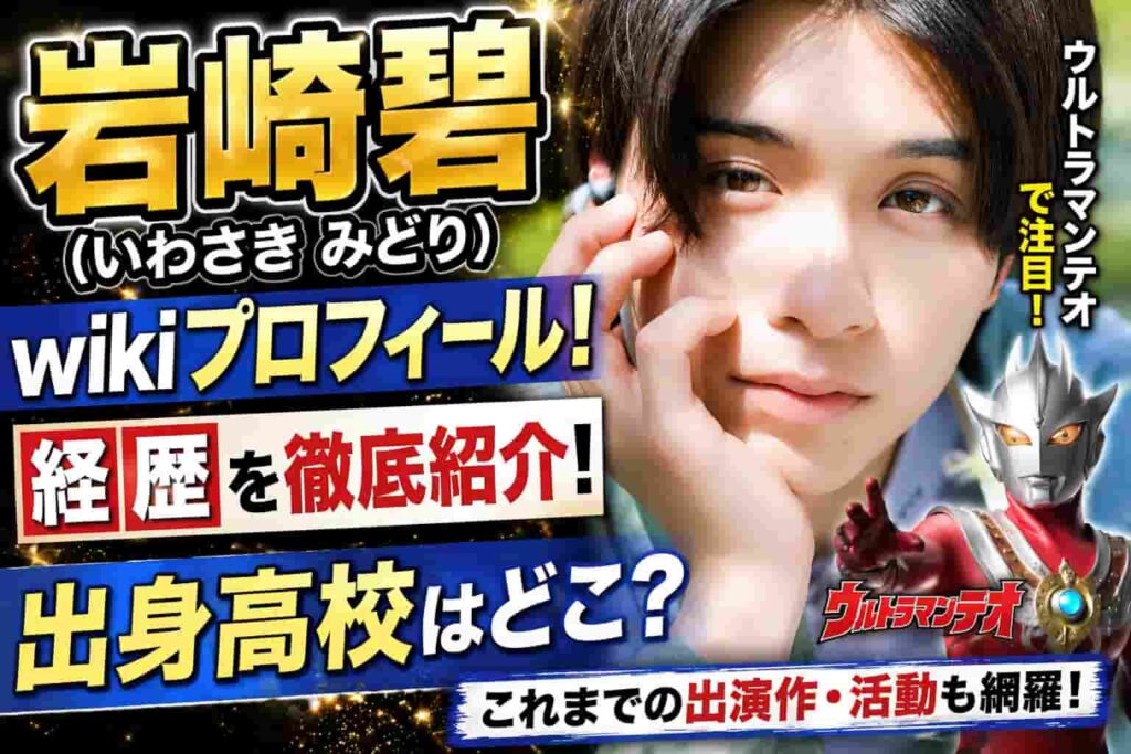 2026年放送予定の「ウルトラマンテオ」で主演に抜擢された岩崎碧さん。 デビュー間もない新人俳優が大役を任されたことで、「岩崎碧って誰?」「どんな経歴なの?」と気になっている方も多いのではないでしょうか。 この記事では、岩崎碧さんのプロフィール... -