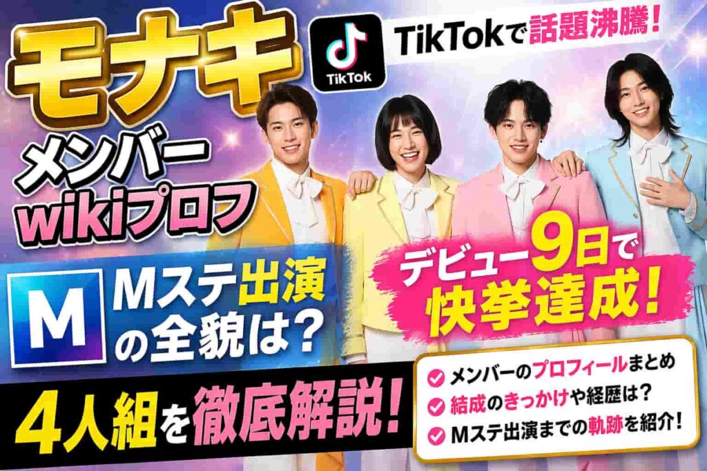 モナキ (TikTok)メンバーのwikiプロフ Mステ出演の全貌は?デビュー9日で快挙達成の4人組を徹底解説!