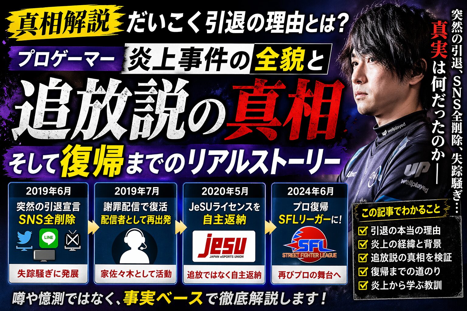 2019年6月、プロゲーマーのだいこくさんが突然SNSを全削除し、引退を発表したことで大きな話題となりました。