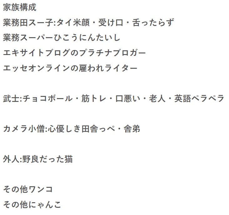 業務田スー子さんは自身のブログのプロフィール欄に家族構成を記載しています。