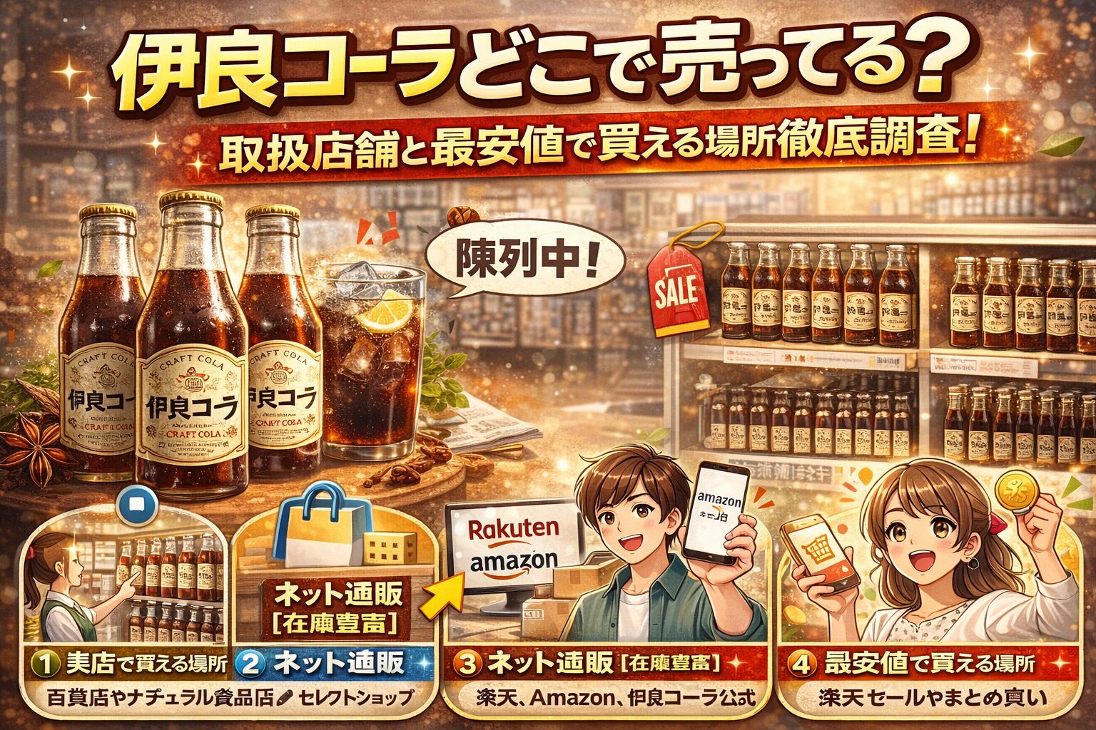 伊良コーラどこで売ってるかについて、取扱店舗と最安値で買える方法をご紹介しました。